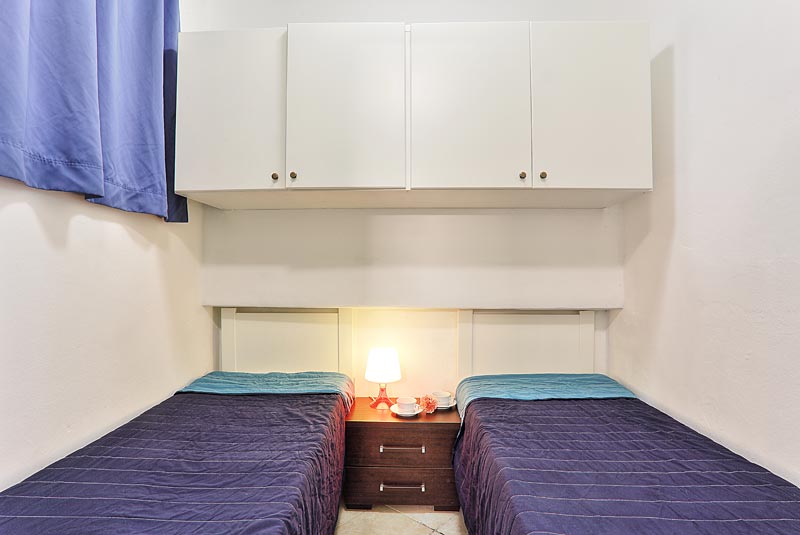 Bilocale 4 posti letto = bilocale di 33 mq composto da soggiorno con angolo cottura e letto matrimoniale a scomparsa, camera con due letti singoli, bagno con doccia, terrazza con vista mare. A 100/150 metri dal mare.